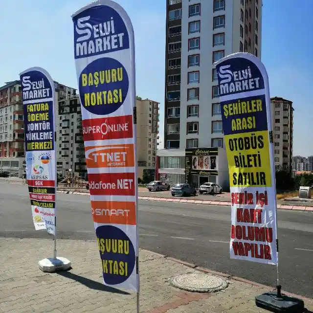 Market ile ilgili hizmet veren, Market ile ilgili malzeme veya Market ürünlerini satan firmalara ait Market Yelken Bayrak Örnekleri ile ilgili Yelken Bayrak Fotoğraflarını burada görüntüleyebilirsiniz